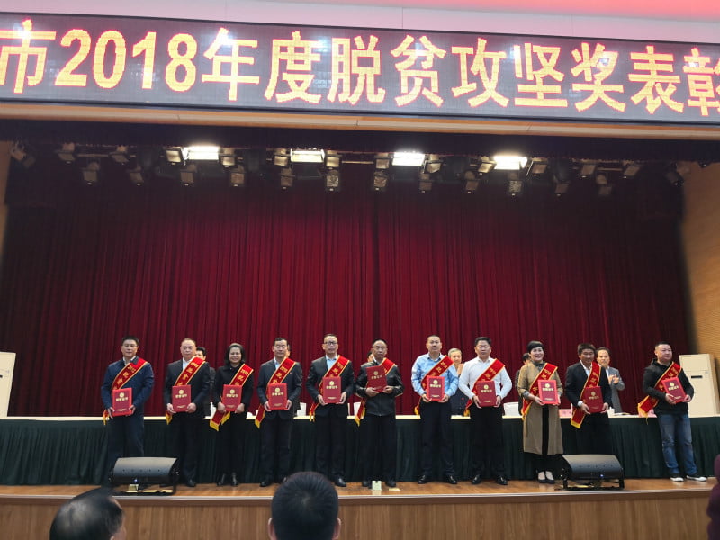 孔德穩(wěn)(中)榮獲信陽市2018年度脫貧攻堅“奉獻獎”