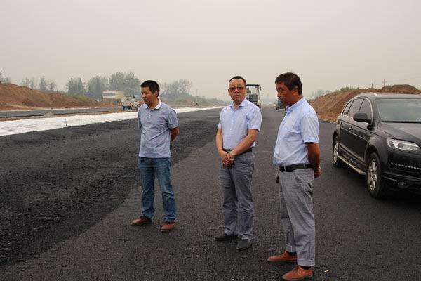 9月22日上午,公司總經理孔德穩(wěn)在工程部、辦公室等人員的陪同下,驅車分別來到信陽職業(yè)技術學院、羊山新區(qū)工業(yè)大道,檢查指導路面施工情況。在職業(yè)技術學院,孔總與項目部人員詳細了解三個標段的施工進展情況,目前存在的困難和問題。當項目部陳志明經理介紹到二、三標路段水泥穩(wěn)定碎石已做完,現正抓緊進行涵管鋪設,后面進入三標人行道建設時,孔總對項目部的工作給予肯定。隨后,孔總一行又來到羊山新區(qū)家居產業(yè)小鎮(zhèn)工業(yè)大道,檢查瀝青路面施工情況。油面分公司漆昌輝經理、王有志經理分別向孔總介紹了近期工業(yè)大道油面鋪設進度,并表示在天氣陰雨不斷的情況下,油面分公司組織廣大員工起早貪黑,加班加點,不怕疲勞,連續(xù)作戰(zhàn),搶天氣、抓進度,力爭在中秋節(jié)前完工??卓倢τ兔娣止具@種敢打敢拼的精神給予高度贊揚。圖為孔總分別在職院、工業(yè)大道項目工地檢查時的情景。